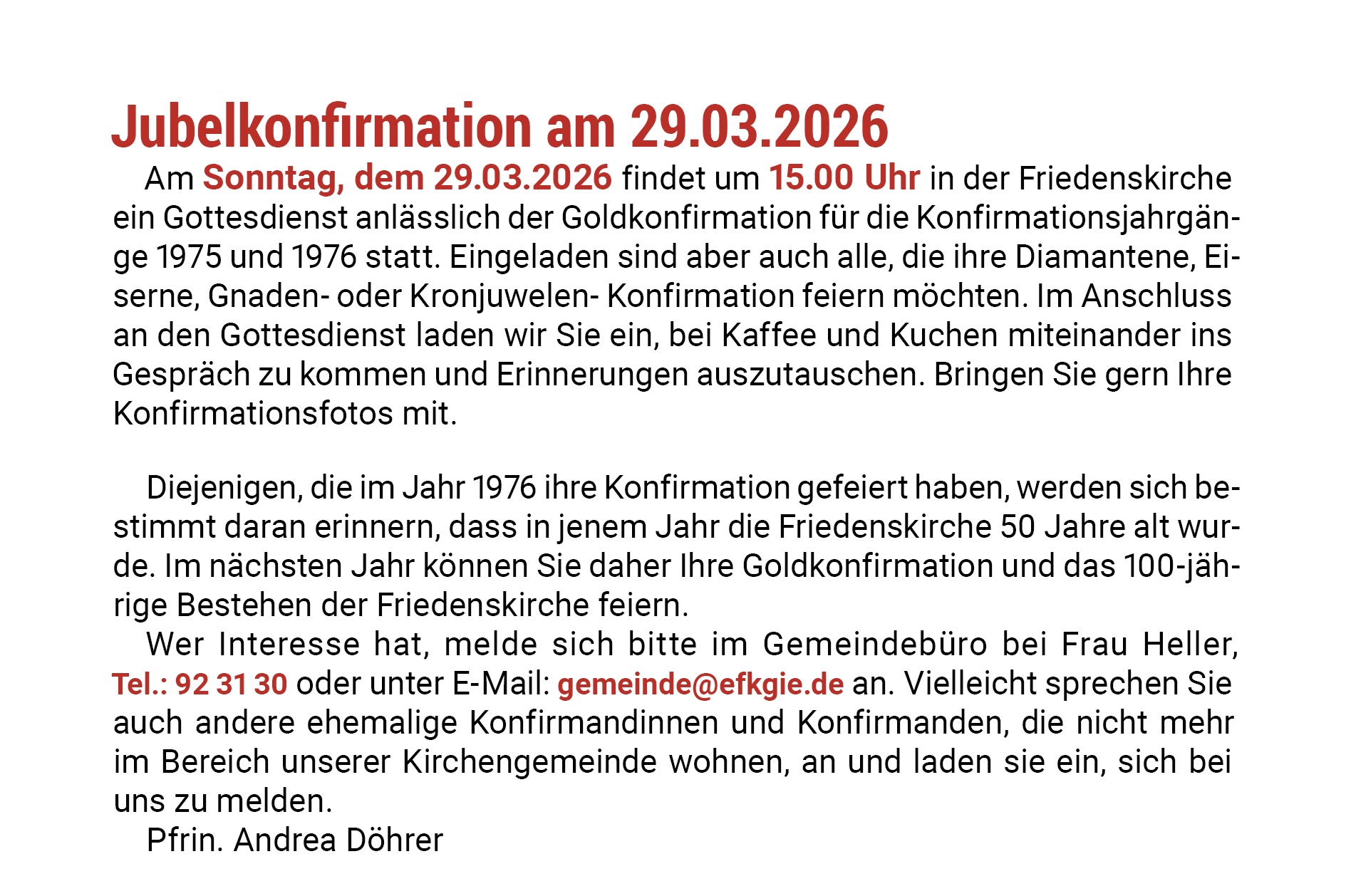 Lesen Sie hier mehr darüber, was es in unserer Gemeinde Neues gibt.